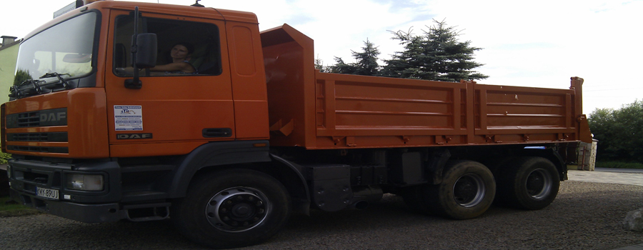 Dzięki szerokiej gamie samochodów i maszyn jakie posiadamy w naszej ofercie znajduje sie także przewóz materiałów sypkich - piaski, żwiry, kruszywa, ziemia, gruz. Przewóz materiałów budowlanych, także samowyładowawczy. Przewóz maszyn i urzadzeń.